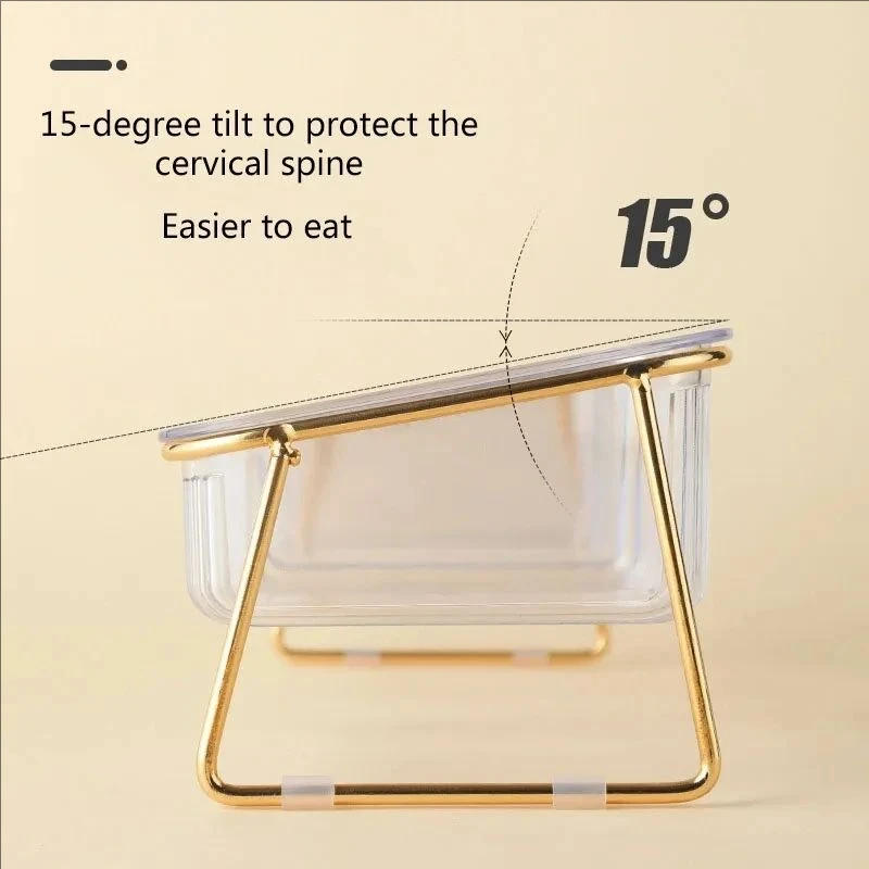 This elevated double pet bowl is designed for comfortable and healthy feeding. The raised stand helps reduce neck strain for kittens and puppies. Two bowls allow simultaneous food and water feeding. Transparent bowls make it easy to monitor food and water levels. Made with durable metal support for stable placement. Suitable for both cats and small dogs. The smooth surface allows quick and easy cleaning. Modern design fits well with home interiors. Ideal for daily feeding routines. This double bowl set offers convenience, hygiene, and comfort for pets.